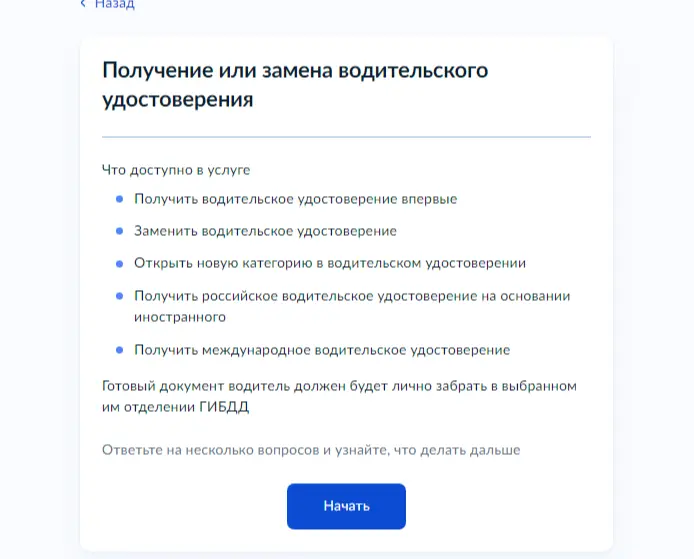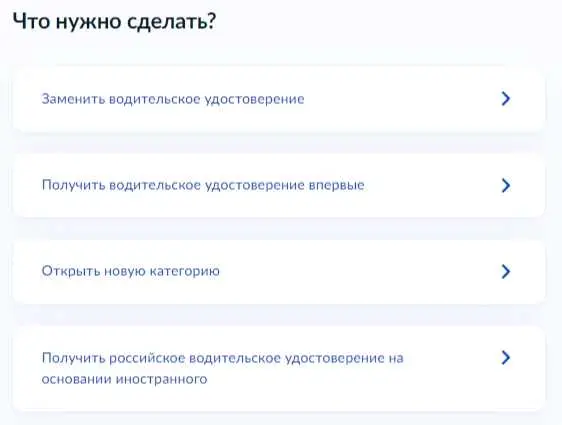 Если вы получаете права в первые то выбираем пункт "Получить водительское удостоверение впервые"